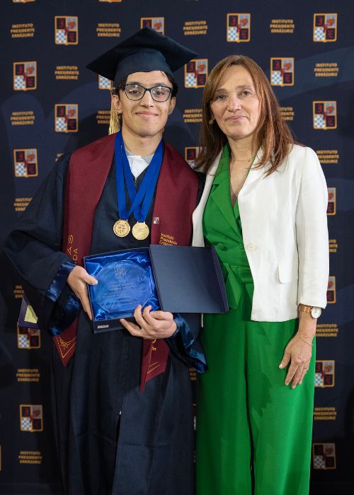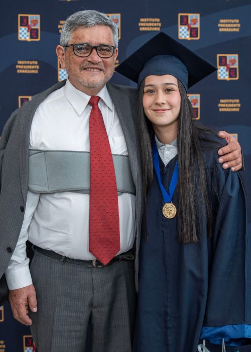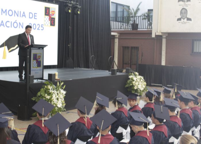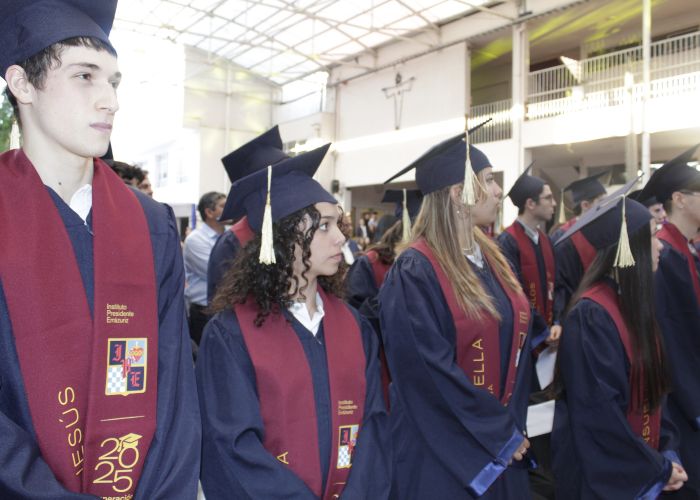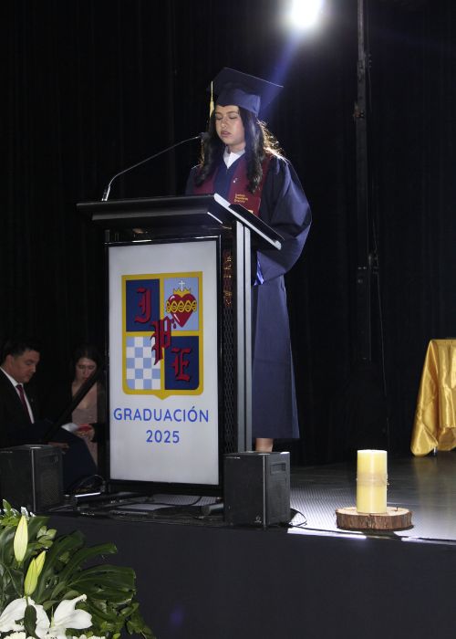 Durante la ceremonia, también se hizo presente José Moena, estudiante de cuarto año de Derecho y presidente del Centro de Egresados del IPE, quien dirigió unas palabras de aliento a los recién egresados, invitándolos a mantener vivo el vínculo con su colegio y con los valores que aquí aprendieron.