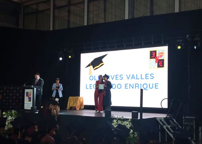 Posteriormente, nuestra rectora Denise Ramírez dirigió unas palabras a los graduados, destacando las virtudes de esta generación y su capacidad de esfuerzo y compromiso. En su mensaje, expresó:  “Ustedes, jóvenes, no lo saben, pero están en un lugar privilegiado; el lugar perfecto entre aquellos que tienen muchas riquezas que a veces, por tenerlo todo, no ejercen el esfuerzo propio o reciben las cosas de manera fácil, y aquellos que tienen muy poco y que viven en condiciones que ningún niño merece vivir.”