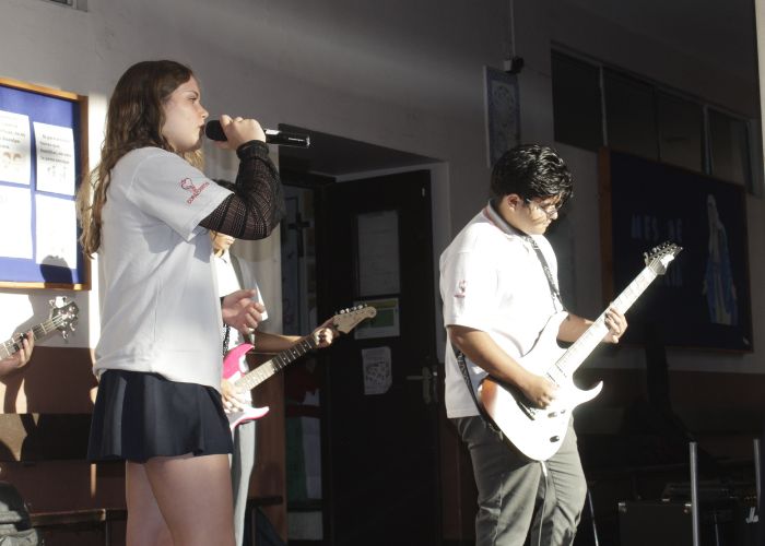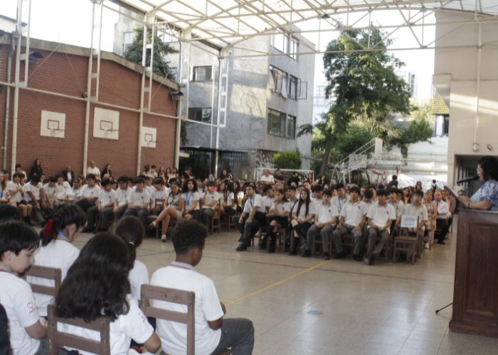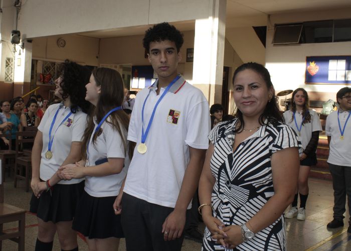 La jornada comenzó con un momento de oración guiado por nuestro Director de Formación, Néstor Nieto, para luego dar paso a las palabras de nuestra rectora, Denise Ramírez, quien invitó a los estudiantes, de manera voluntaria, a compartir los aprendizajes más significativos que se llevan de este año escolar.